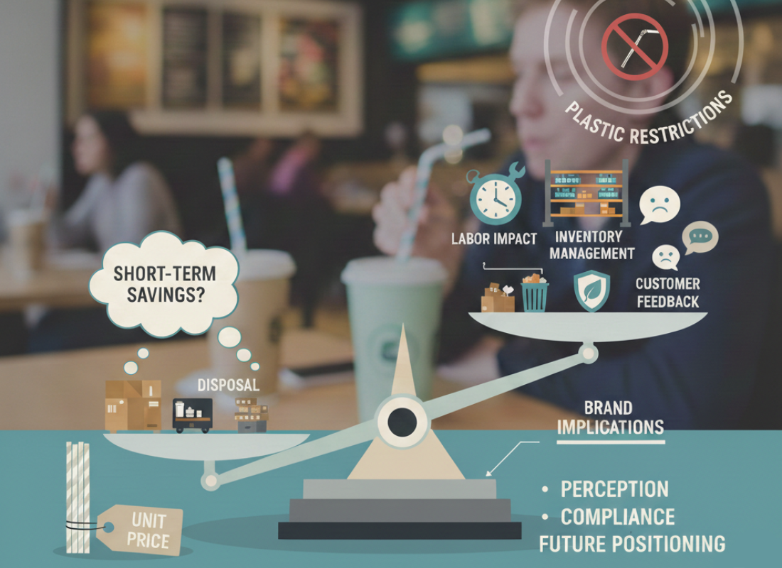Evaluating paper straws through the lens of total cost of ownership offers a clearer perspective. Beyond unit price, operators must account for labor impact, inventory management, waste disposal, customer feedback, and brand implications.